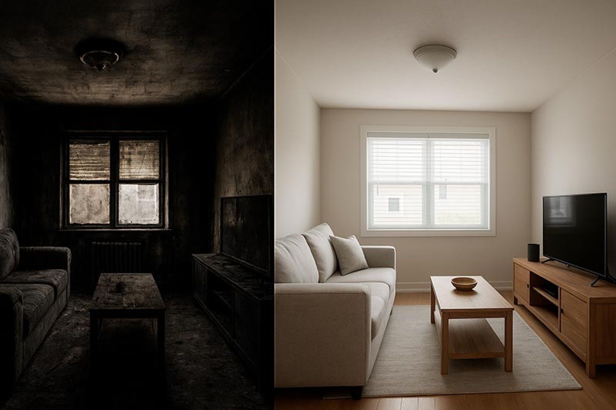 Nous intervenons rapidement dans les maisons, appartements, bureaux, commerces, entrepôts, hôtels, usines et bâtiments publics afin d’éliminer les traces du sinistre, neutraliser les odeurs et restaurer les surfaces endommagées. Notre approche repose sur la compétence technique, la rigueur scientifique et le respect humain, afin de rendre à chaque espace sa propreté et sa sécurité d’origine.